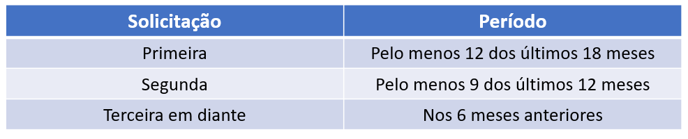 É preciso comprovar ter recebido salários de pessoa jurídica ou de pessoa física a ela equiparada, conforme requisitos na tabela abaixo: